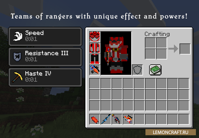 Мод на новое оружие, костюмы, предметы Super Sentai Craft основан на одноименном сериале Супер Сэнтай, который был предвестником знаменитого сериала Могучие рейнджеры. Мод добавит в игру много нового оружия, различные костюмы из сериала и новые предметы, которые непосредственно связаны с тематикой сериала.